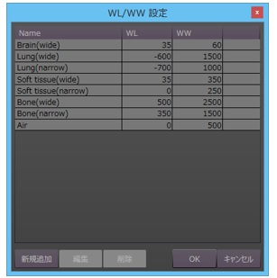 | ・任意のWL/WW設定の保存や編集、現在表示中のWL/WWをプリセットとして登録できます。 |